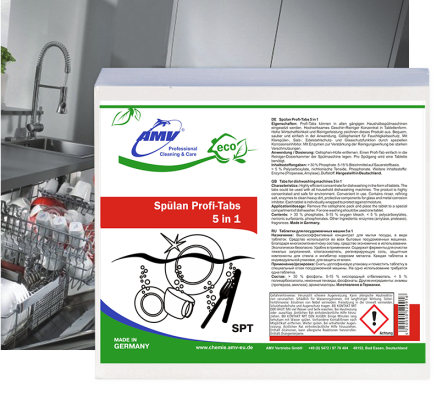Eigenschaften: Profi-Tabs können in allen gängigen Haushaltsspülmaschinen eingesetzt werden. Hochwirksames Geschirr-Reiniger Konzentrat in Tablettenform. Hohe Wirtschaftlichkeit und Reinigerleistung zeichnen dieses Produkt aus. Bequem, sauber und einfach in der Anwendung. Cellophaniert für Feuchtigkeitsschutz. Mit Klarspüler-, Salz-, Edelstahlschutz- und Glasschutzfunktion durch speziellen Korrosionsinhibitor. Mit Enzymen zur Verstärkung der Reinigungswirkung bei starken Verschmutzungen.